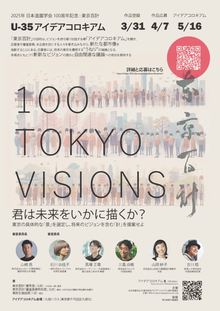 2025年日本造園学会100周年記念全国大会「U-35アイディアコロキアム 東京百計/100 Tokyo Visions」にて当社チームが優秀賞および審査員特別賞(馬場正尊賞、山崎亮賞)を受賞しました。